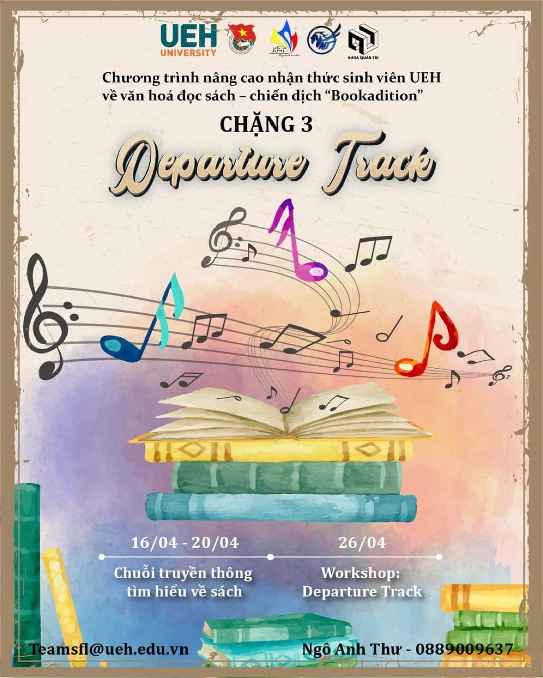 Chặng 3 sẽ gửi đến các bạn sinh viên Workshop “Departure track” nhằm lan tỏa niềm yêu đọc sách thông qua việc chia sẻ những lợi ích đọc sách, đặc biệt, đến các bạn trẻ tuổi 20 với các chủ đề "Sách là người thầy", "Sách là người bạn", "Sách là người tình".