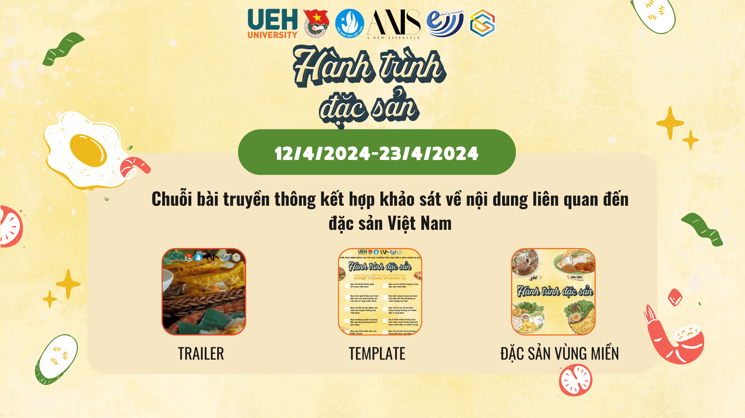 Chương trình Khám phá trải nghiệm đặc sản Việt Nam 2024 - Hành Trình Đặc Sản diễn ra với 04 hoạt động chính (Khởi Vị - Bản Đồ Hương Vị - Hành Trình Đặc Sản - Hồi Ức Hương Vị), đến với từng hoạt động Ban tổ chức luôn mong muốn mang tới cho các bạn UEHers những trải nghiệm chân thật nhất về nền ẩm thực nước nhà, không chỉ đơn giản qua thị giác mà là bằng tất cả những giác quan. Trải qua 04 hoạt động với vô vàn điều thú vị và hấp dẫn chưa từng có, chương trình đã thu hút sự quan tâm đông đảo từ các bạn sinh viên tại Đại học Kinh tế TP. Hồ Chí Minh nói riêng và tất cả người dân trên địa bàn thành phố nói chung.