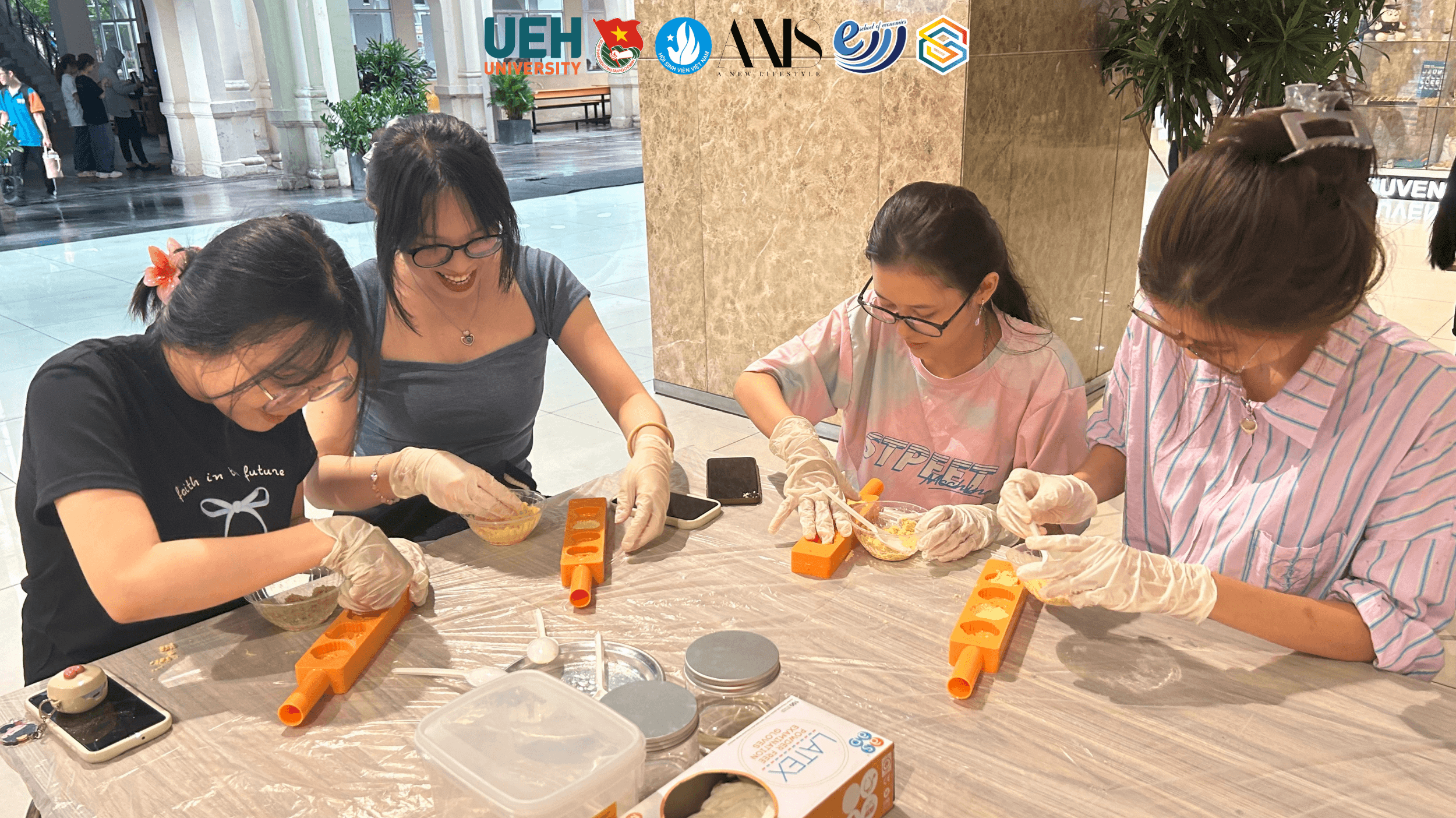 Workshop đặc biệt trải nghiệm làm bánh mang tên Hành Trình Đặc Sản, với những loại bánh ngọt dân dã, quen thuộc tượng trưng cho các vùng miền như bánh đậu xanh - Hải Dương, bánh phục linh - Quảng Ngãi, bò bía ngọt - TP. Hồ Chí Minh được tổ chức 03 ngày liên tiếp 09-10-11/05/2024 sảnh B1, đón tiếp rất nhiều sinh viên và giảng viên đến tham dự.